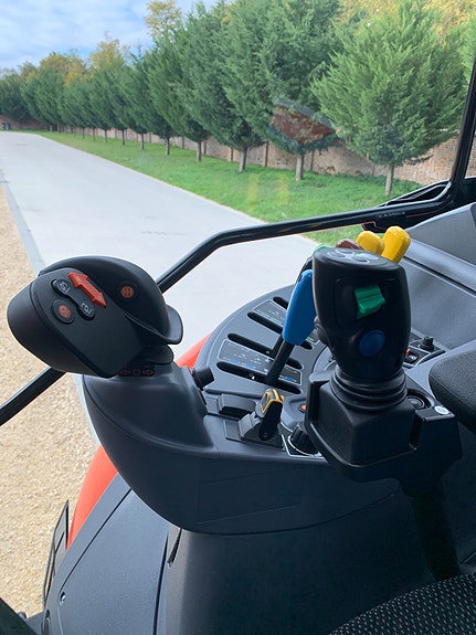 Kontrollpanelet er montert på høyre side og armlenet med girkasse, hydraulikk og kraftuttak innen rekkevidde.Stort LCD display med oversikt over all info du trenger for å betjene traktoren.